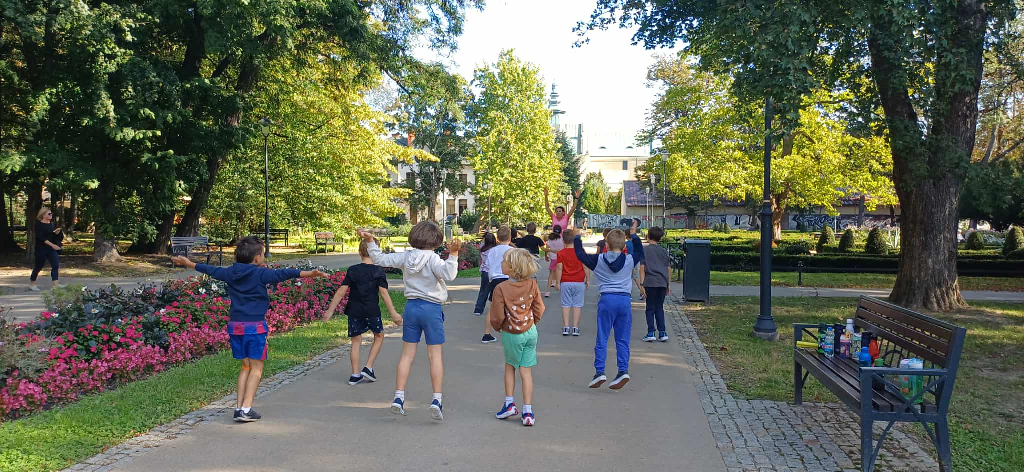 Nasze pierwszaki wzięły udział w kolejnym etapie projektu „Klasa w terenie”. Tym razem to lekcja wychowania fizycznego odbyła się poza murami szkoły – na świeżym powietrzu.