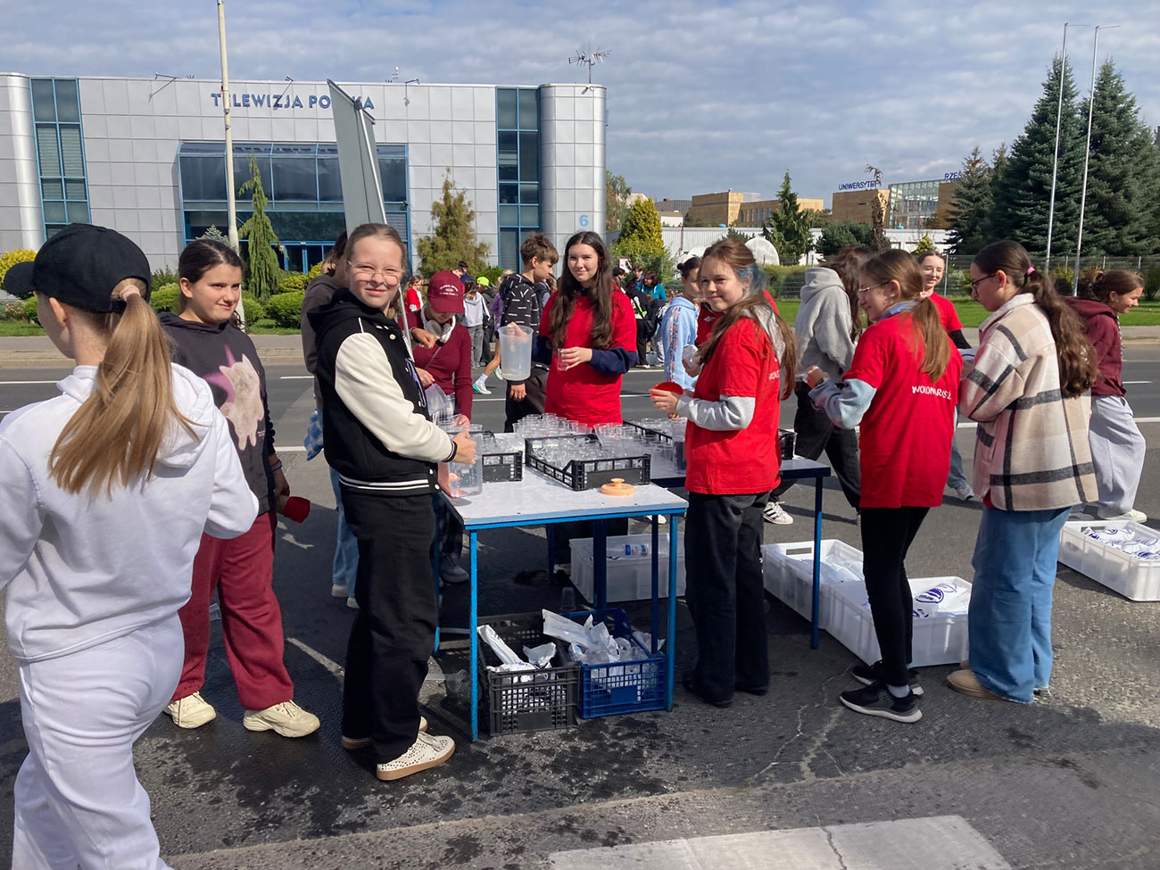 Na trasie głównego biegu 10 i 5 km, nasi uczniowie zagrzewali do sportowej walki, nawadniali biegaczy i sprzątali po dobrze wykonanej pracy. Niektórzy wolontariusze najpierw uczestniczyli we wcześniejszych biegach młodzieżowych, a później pomagali z uśmiechem mimo zmęczenia. Chętnych do pracy zebrała się cała gromada aż 36 wolontariuszy z klas siódmych i ósmych. Dziękujemy za poświęcony wolny czas. Dobrze, że możemy na Was liczyć! Uczniów zorganizowały opiekunki Szkolnego Koła Wolontariatu panie: Agata, Anna i Kasia.