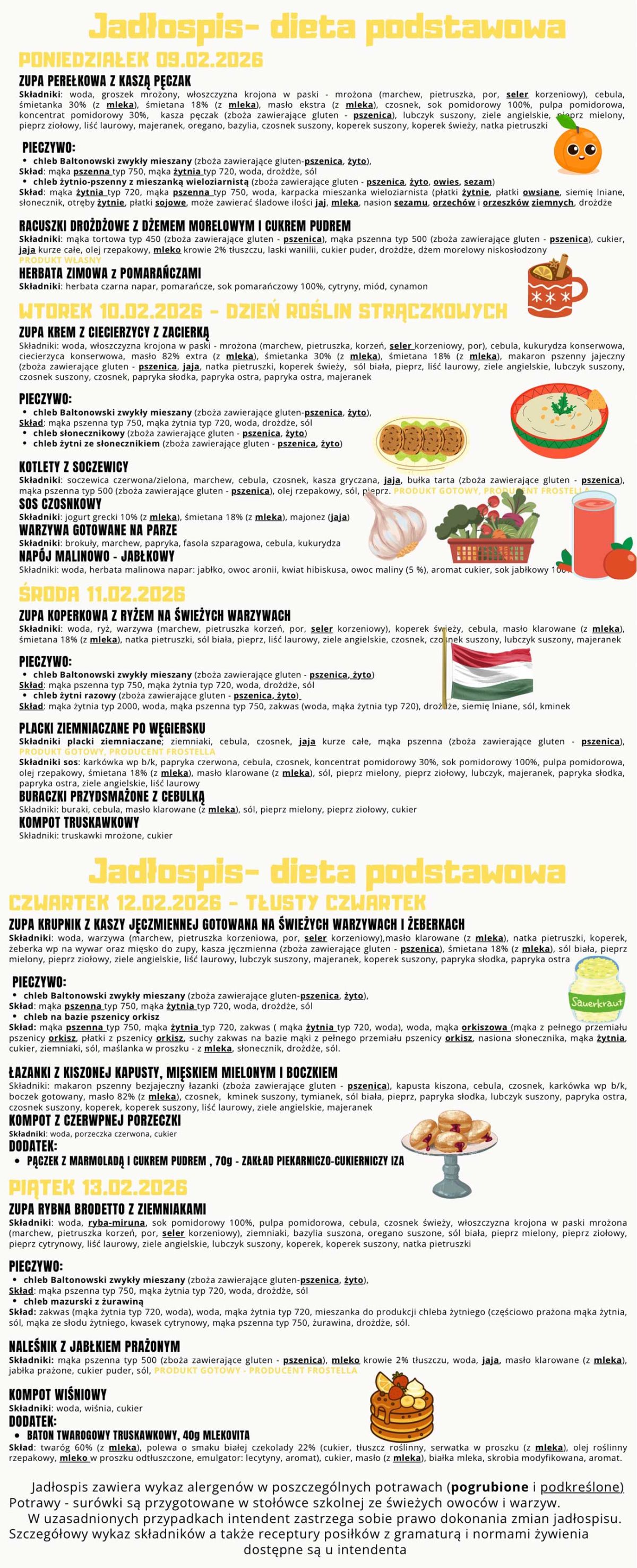 Jadłospis 09.02. - 13.02.2026 r. - dieta bezglutenowa >>>