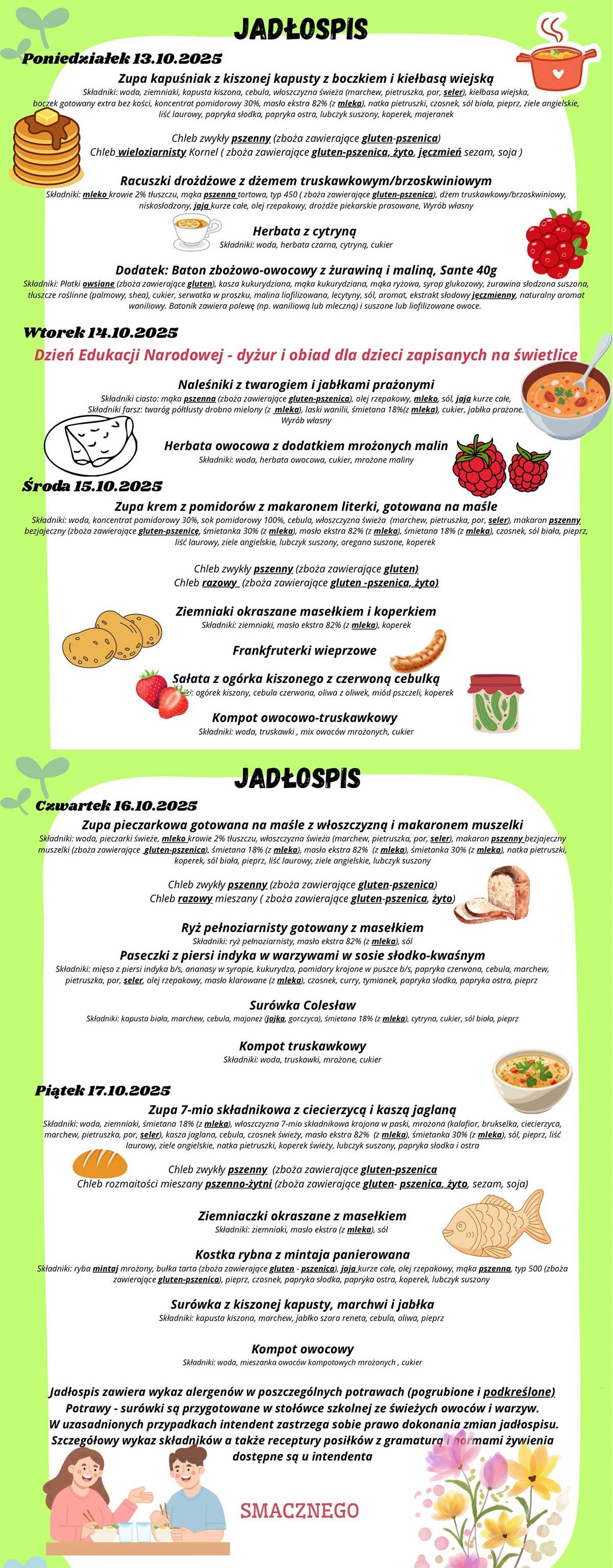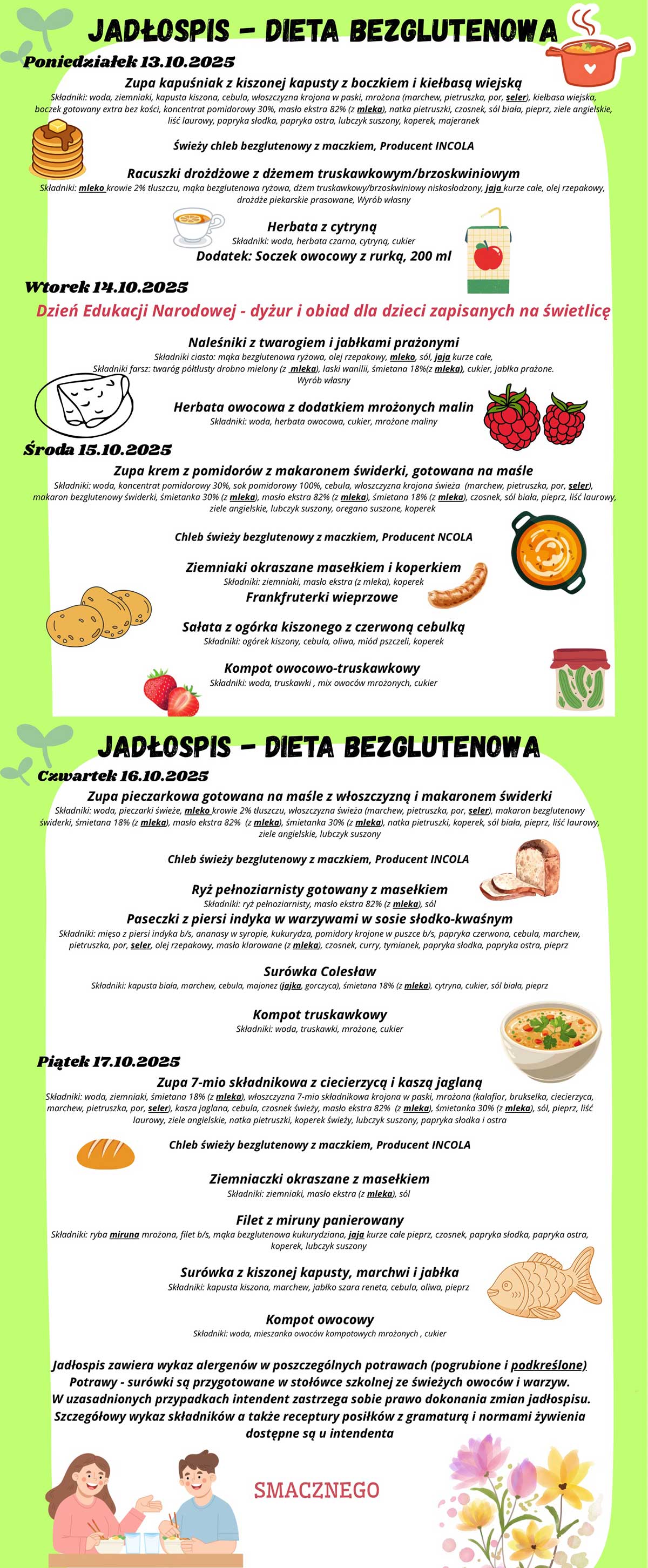 Jadłospis 13.10.2025 - 17.10.2025 r. - dieta bezglutenowa >>>