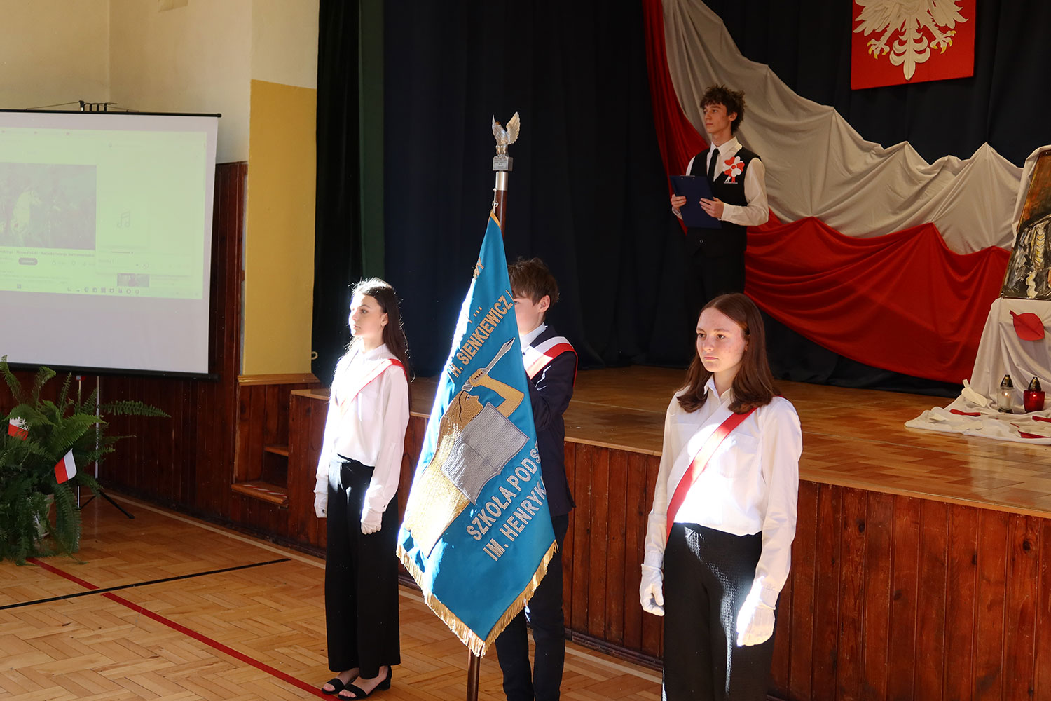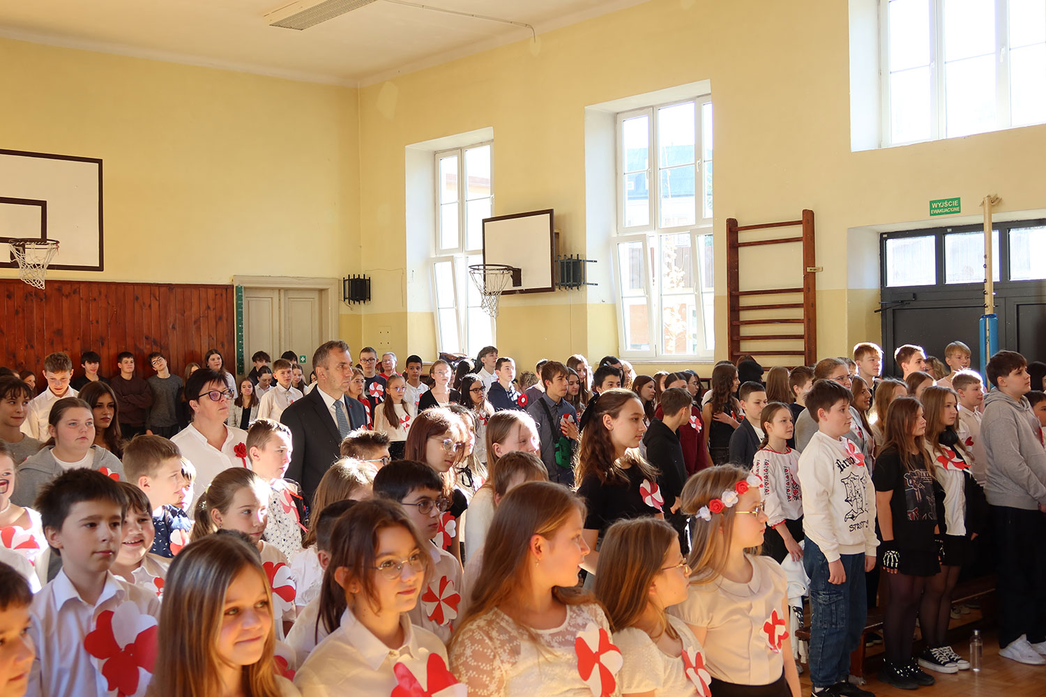 Centralnym punktem obchodów było tradycyjne już wspólne odśpiewanie o godzinie 11:11 czterech zwrotek „Mazurka Dąbrowskiego” w ramach w ogólnopolskiej akcji „Szkoła do hymnu” organizowanej przez Ministerstwo Edukacji Narodowej. Zapoznano się również z informacjami, dlaczego wolność jest tak ważna, ile wymagała poświęceń, abyśmy mogli żyć w suwerennym państwie. Następnie wszyscy zaśpiewali pieśni patriotyczne: „My, Pierwsza Brygada”, „Szara Piechota” i „Rota”.