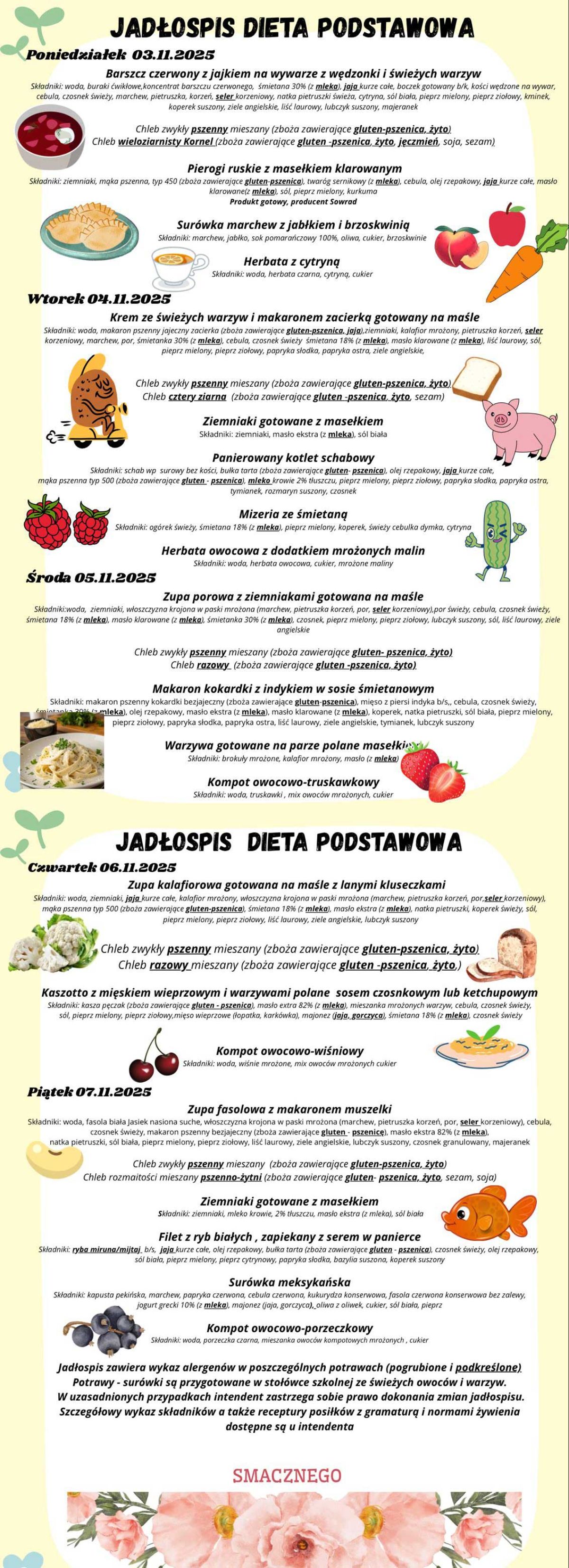 Jadłospis 03-07.11.2025 r. - dieta bezglutenowa >>>