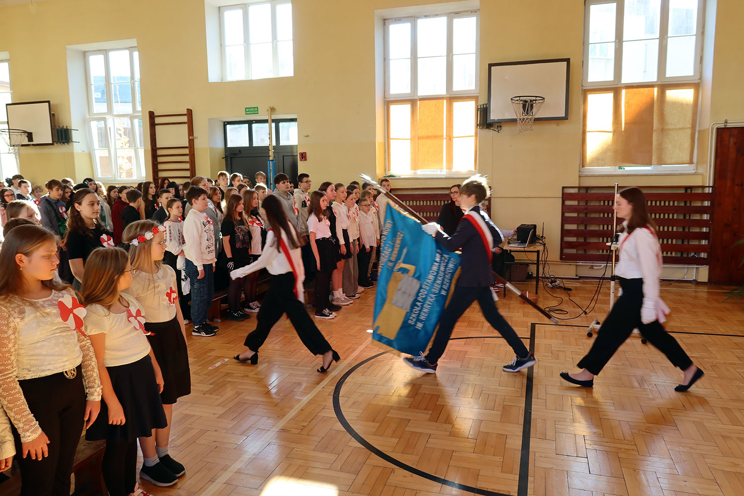 Centralnym punktem obchodów było tradycyjne już wspólne odśpiewanie o godzinie 11:11 czterech zwrotek „Mazurka Dąbrowskiego” w ramach w ogólnopolskiej akcji „Szkoła do hymnu” organizowanej przez Ministerstwo Edukacji Narodowej. Zapoznano się również z informacjami, dlaczego wolność jest tak ważna, ile wymagała poświęceń, abyśmy mogli żyć w suwerennym państwie. Następnie wszyscy zaśpiewali pieśni patriotyczne: „My, Pierwsza Brygada”, „Szara Piechota” i „Rota”.