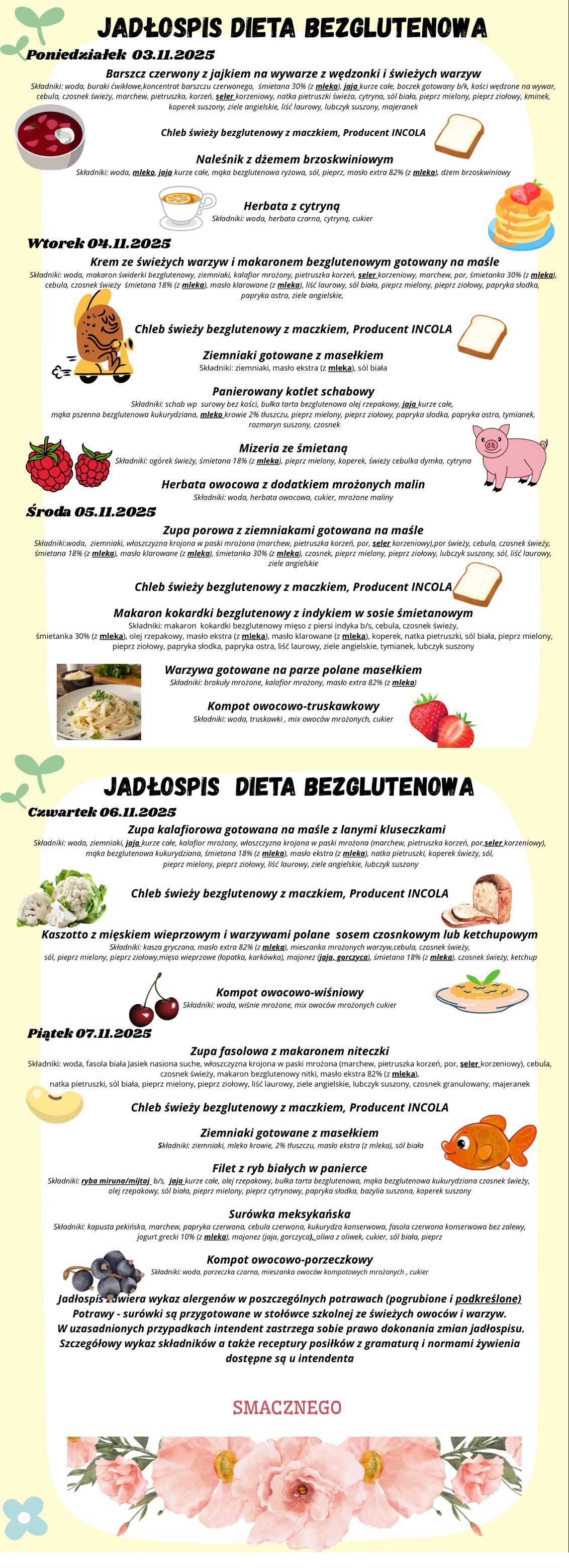 Jadłospis 03-07.11.2025 r. - dieta bezglutenowa >>>