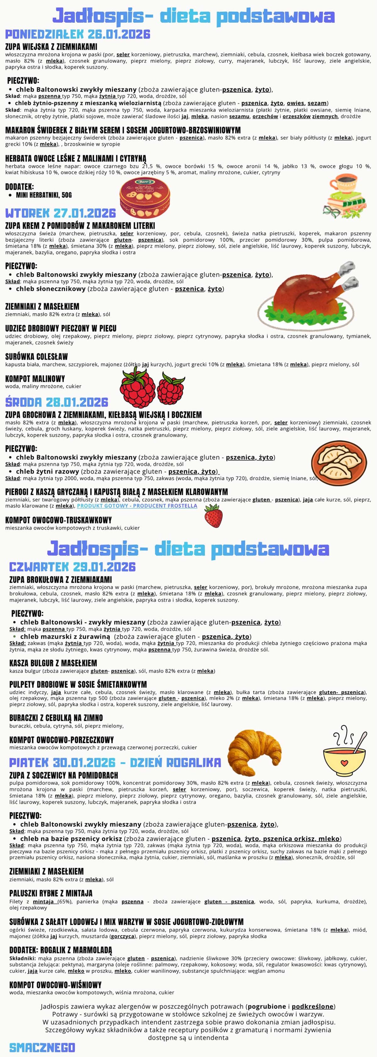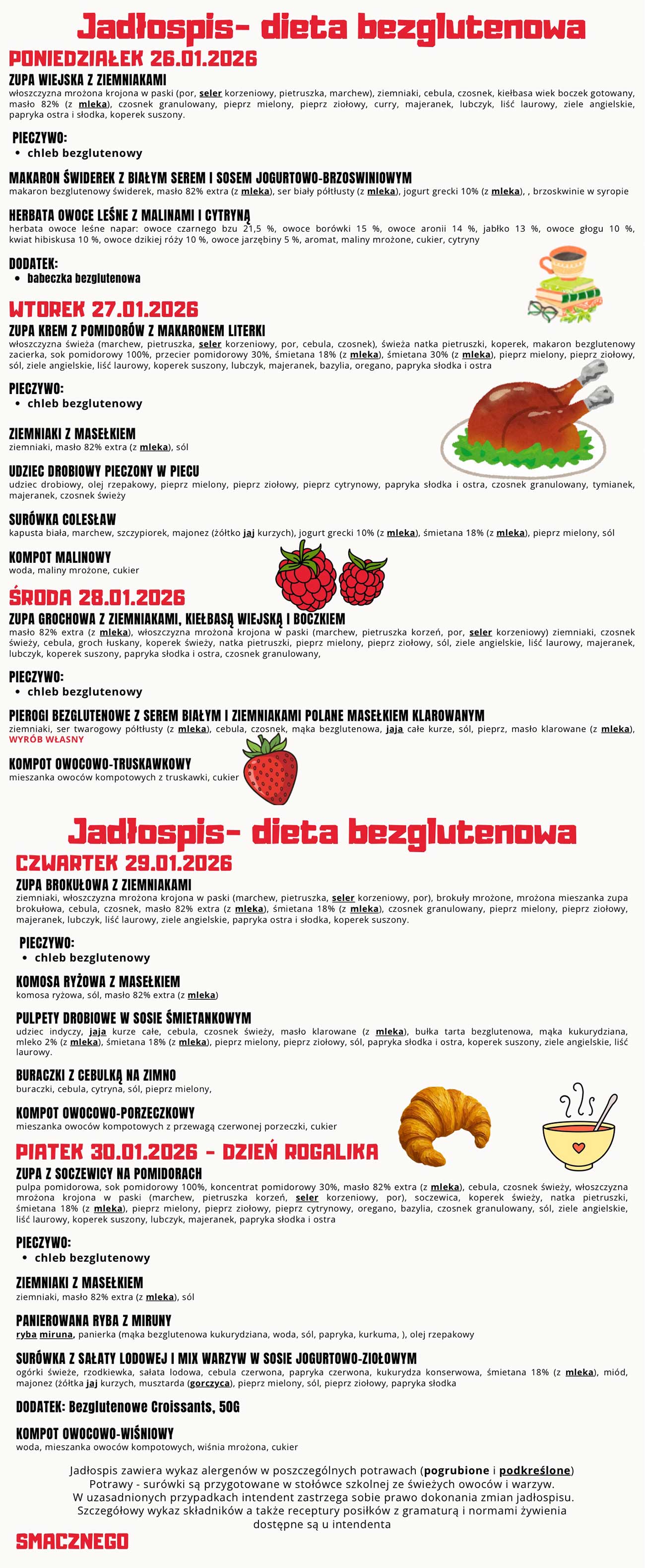 Jadłospis 26.01. - 30.01.2026 r. - dieta bezglutenowa >>>