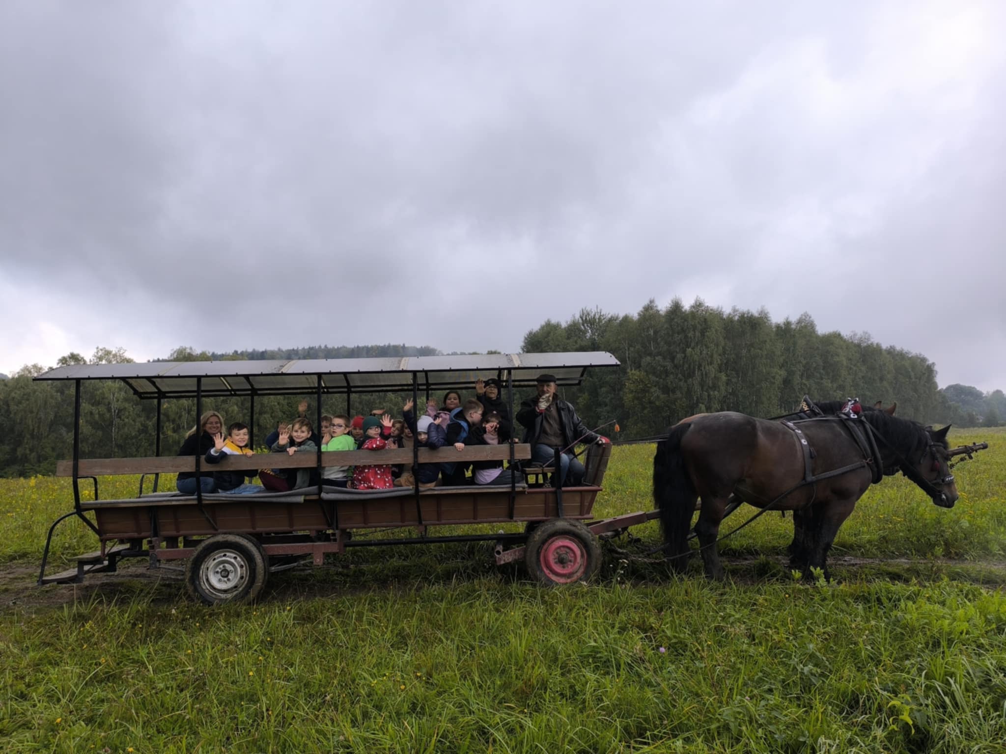 Największym hitem okazało się kiszenie kapusty. Każdy pierwszak wrócił do domu z własnym słoiczkiem – pamiątką i dowodem, że w życiu warto umieć coś więcej niż tylko włączyć komputer. Była też jazda taczkami i drewnianymi wózkami, łowienie rybek z bali i mnóstwo, ale to naprawdę mnóstwo śmiechu. Choć pogoda była kapryśna, dobry humor nie opuszczał nikogo. Dzieci wróciły brudne, ale szczęśliwe – czyli dokładnie takie, jakie powinny być po udanej wycieczce.