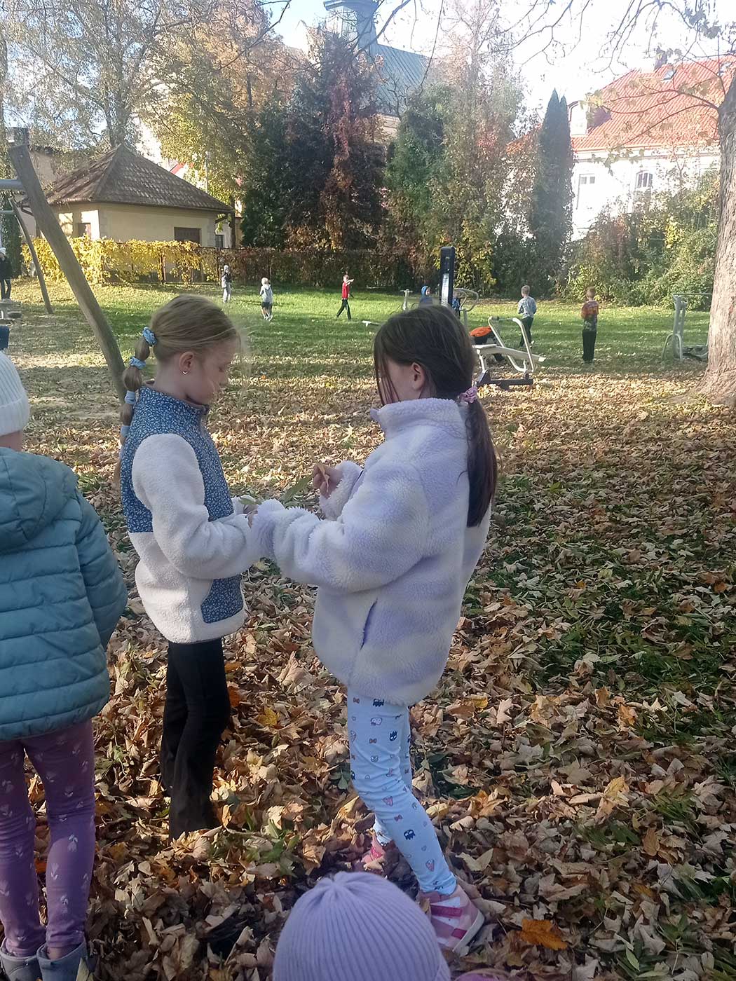 Dzieci pomagały w zbieraniu dyń - nie była to łatwa praca, ponieważ były one bardzo okazałe i ciężkie. Następnie uczniowie dowiedzieli się, w jaki sposób powstaje zdrowy, słodki miód oraz samodzielnie przygotowali świeczki z węzy pszczelej.