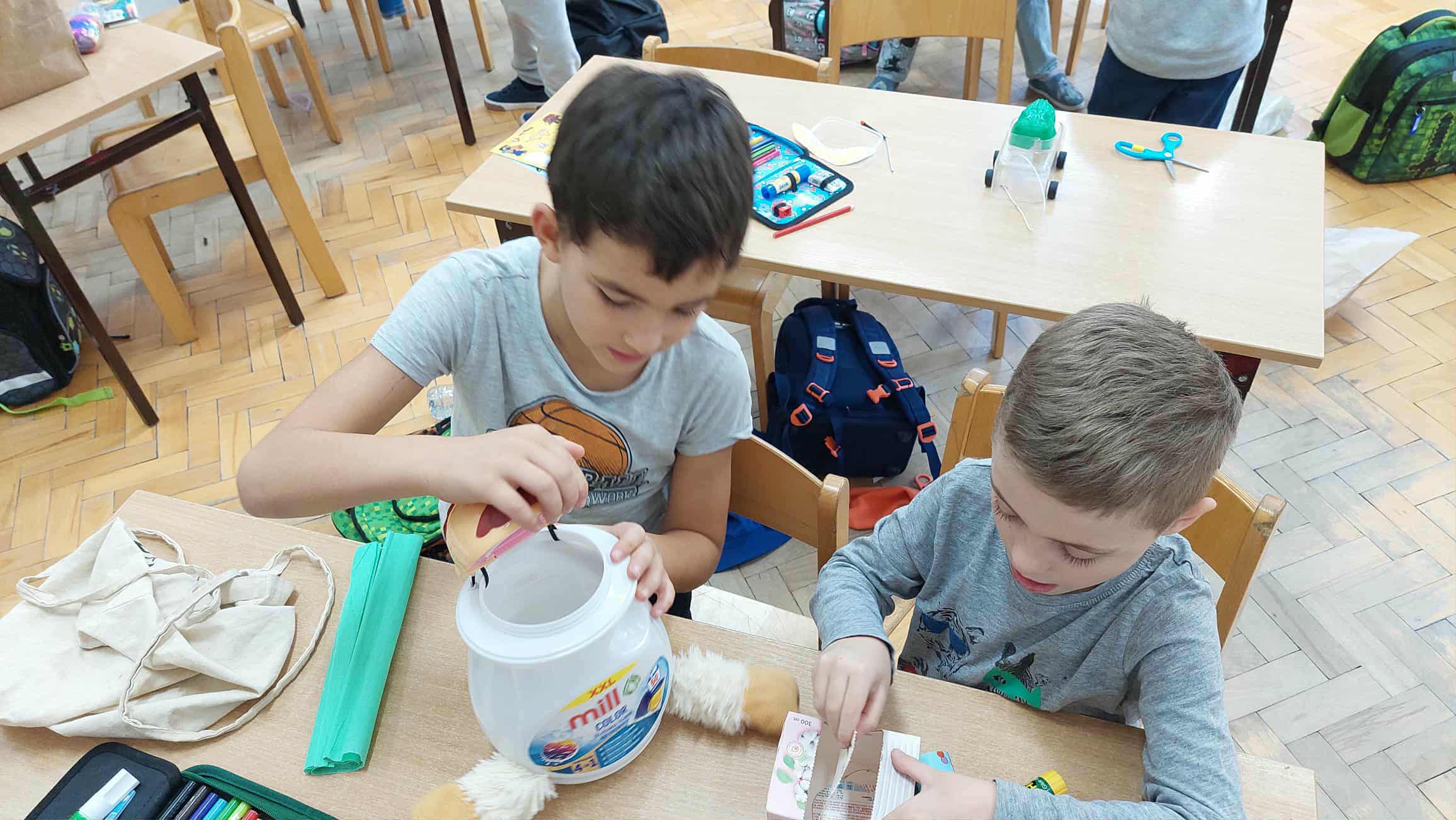 W środę podczas zajęć z edukacji technicznej nasza klasa zamieniła się w prawdziwy warsztat pomysłowości! Uczniowie tworzyli niezwykłe zabawki z odpadów, nadając drugie życie przedmiotom, które na co dzień trafiają do kosza.
