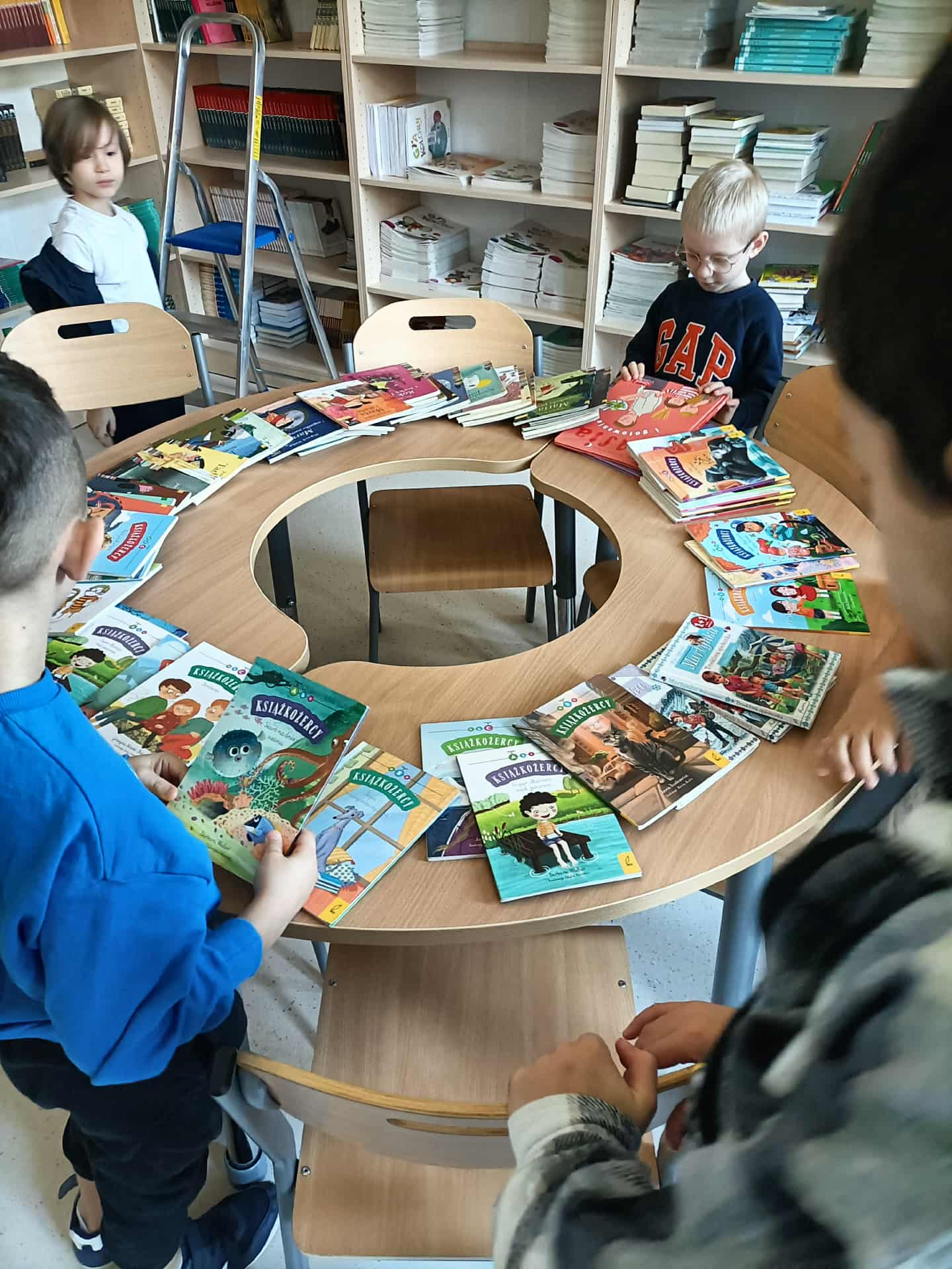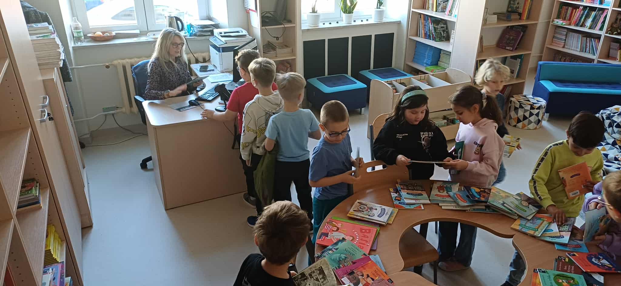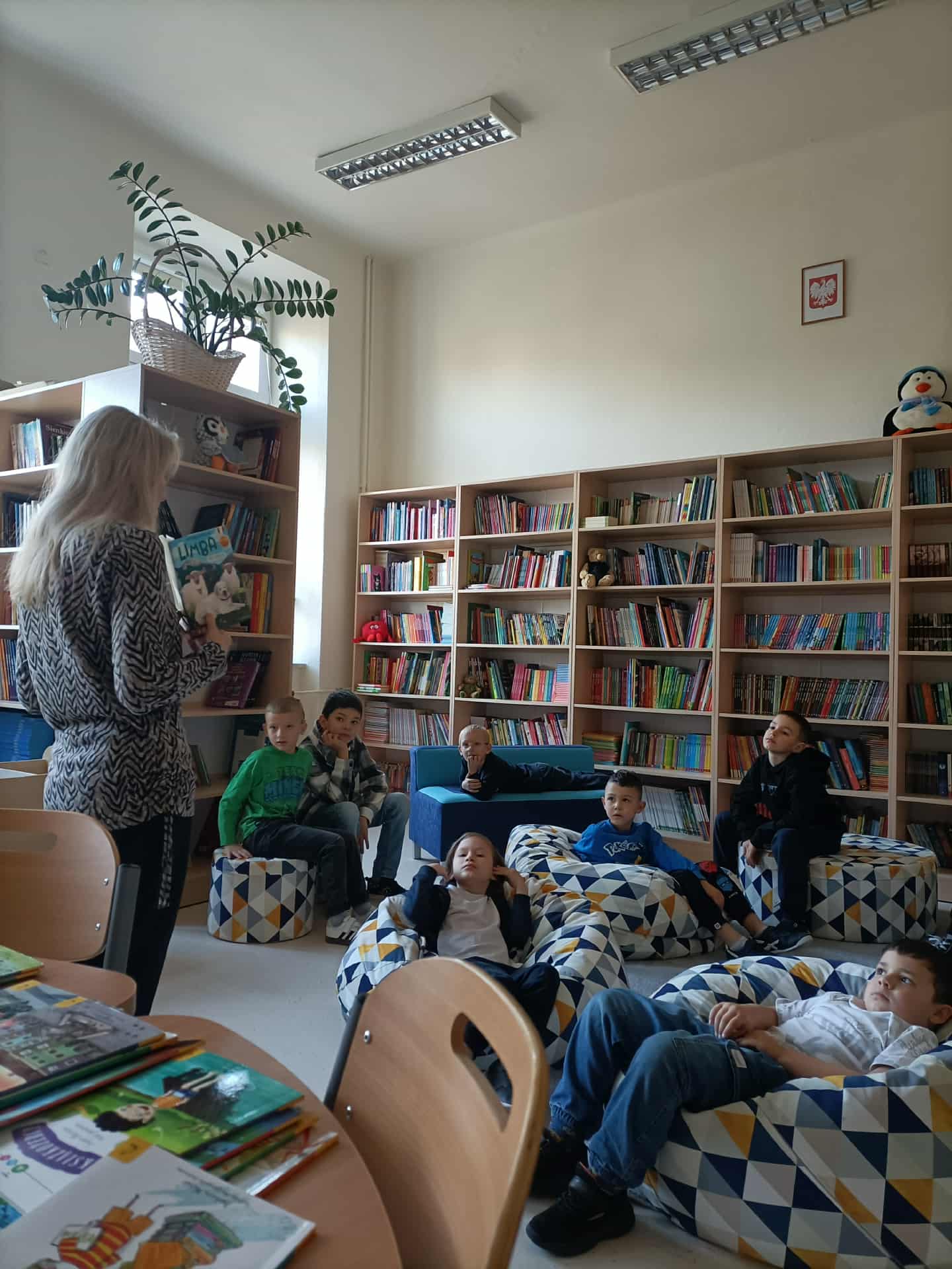 Pierwszoklasiści zapoznali się z księgozbiorem przeznaczonym dla najmłodszych czytelników, regulaminem biblioteki, sposobem wypożyczania książek oraz prośbami książki. Z wielkim zainteresowaniem wysłuchali opowiadania M. Paterak pt. „ Zamkowa biblioteka ”przenosząc się w magiczny i zaczarowany świat bajek. Na zakończenie spotkania każdy uczeń mógł wypożyczyć swoją pierwszą książeczkę.