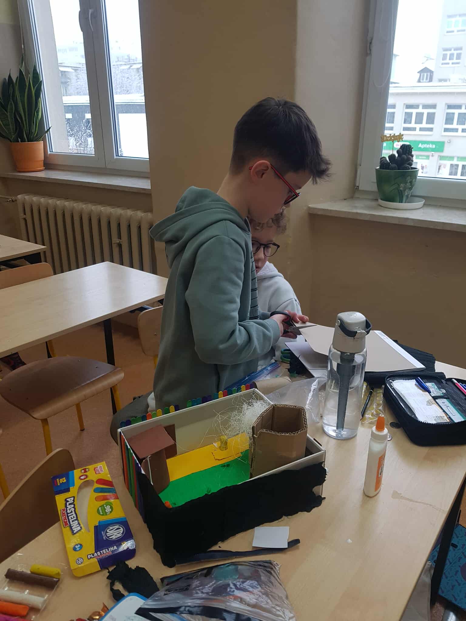 W ramach innowacji pedagogicznej "Polski poza ławką" uczniowie klas 4a i 4b w ciekawy sposób podsumowali lekcje języka polskiego poświęcone lekturze Janusza Christy pt. „Kajko i Kokosz. Szkoła latania”.