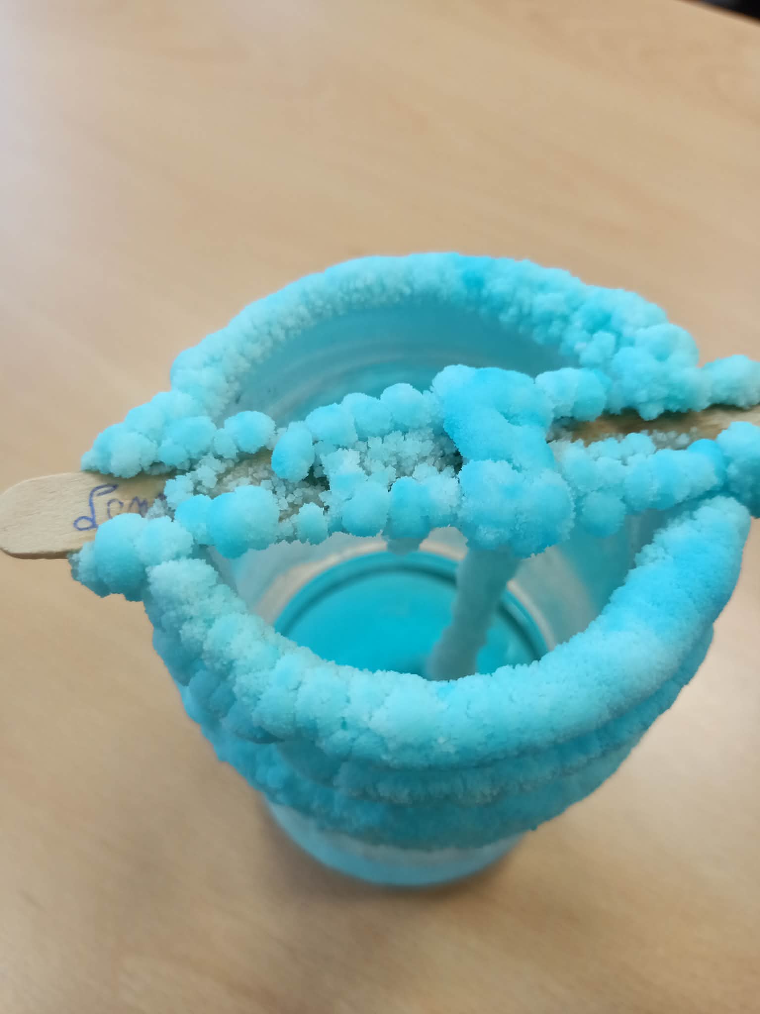Po tygodniu obserwacji mogliśmy podziwiać efekty pracy uczniów: na niciach powstały piękne, barwne kryształki w kształcie sześcianów, kolory dodały doświadczeniu atrakcyjności i wzbudziły duże zainteresowanie, dzieci lepiej zrozumiały proces krystalizacji i przekonały się, że nauka może być jednocześnie fascynująca i kreatywna.