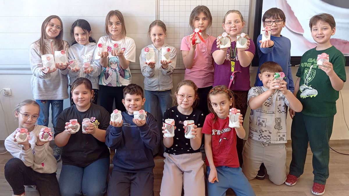 Uczniowie klasy 3b z radością wykonali lampiony dla swoich babć i dziadków. Do ich przygotowania wykorzystali małe słoiki, które ozdobili dekoracyjną tasiemką, koronką oraz różyczką wykonaną z wcześniej zabarwionych płatków kosmetycznych. Do wnętrza lampionów można wsypać kolorową sól do kąpieli lub kawę ziarnistą, a następnie włożyć małą świeczkę, tworząc nastrojowy i wyjątkowy upominek.