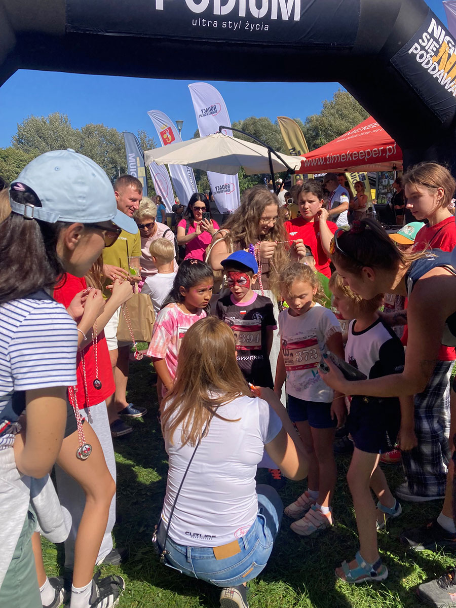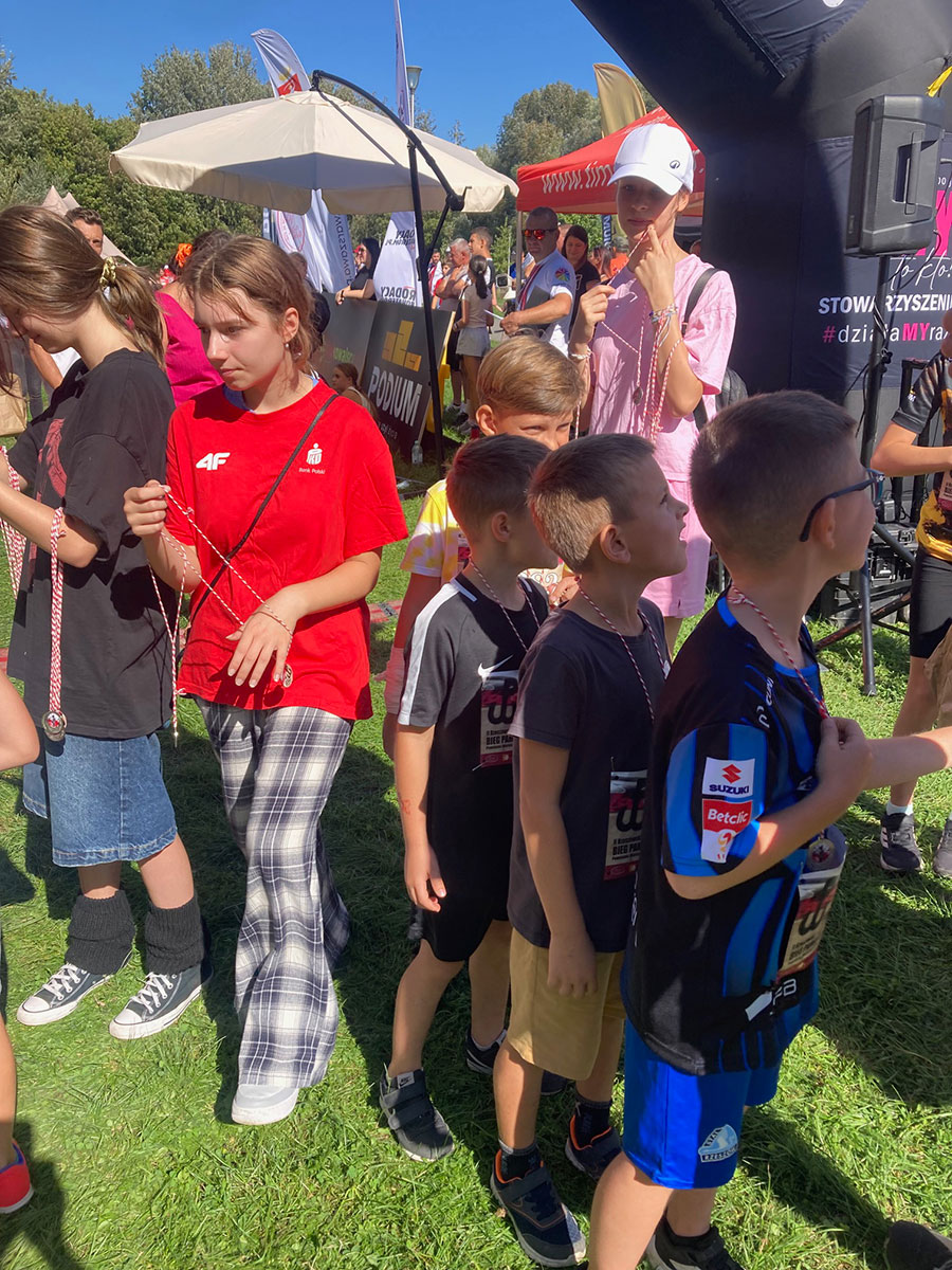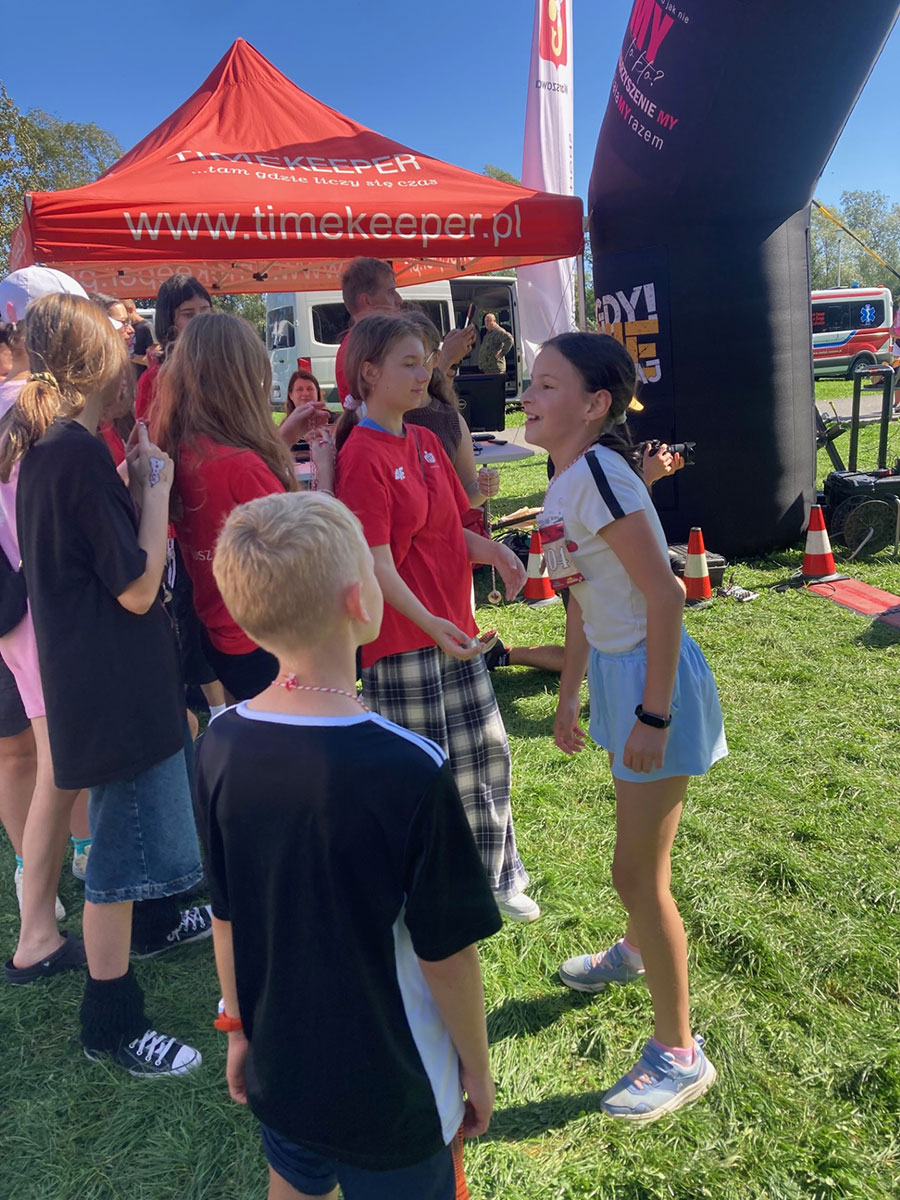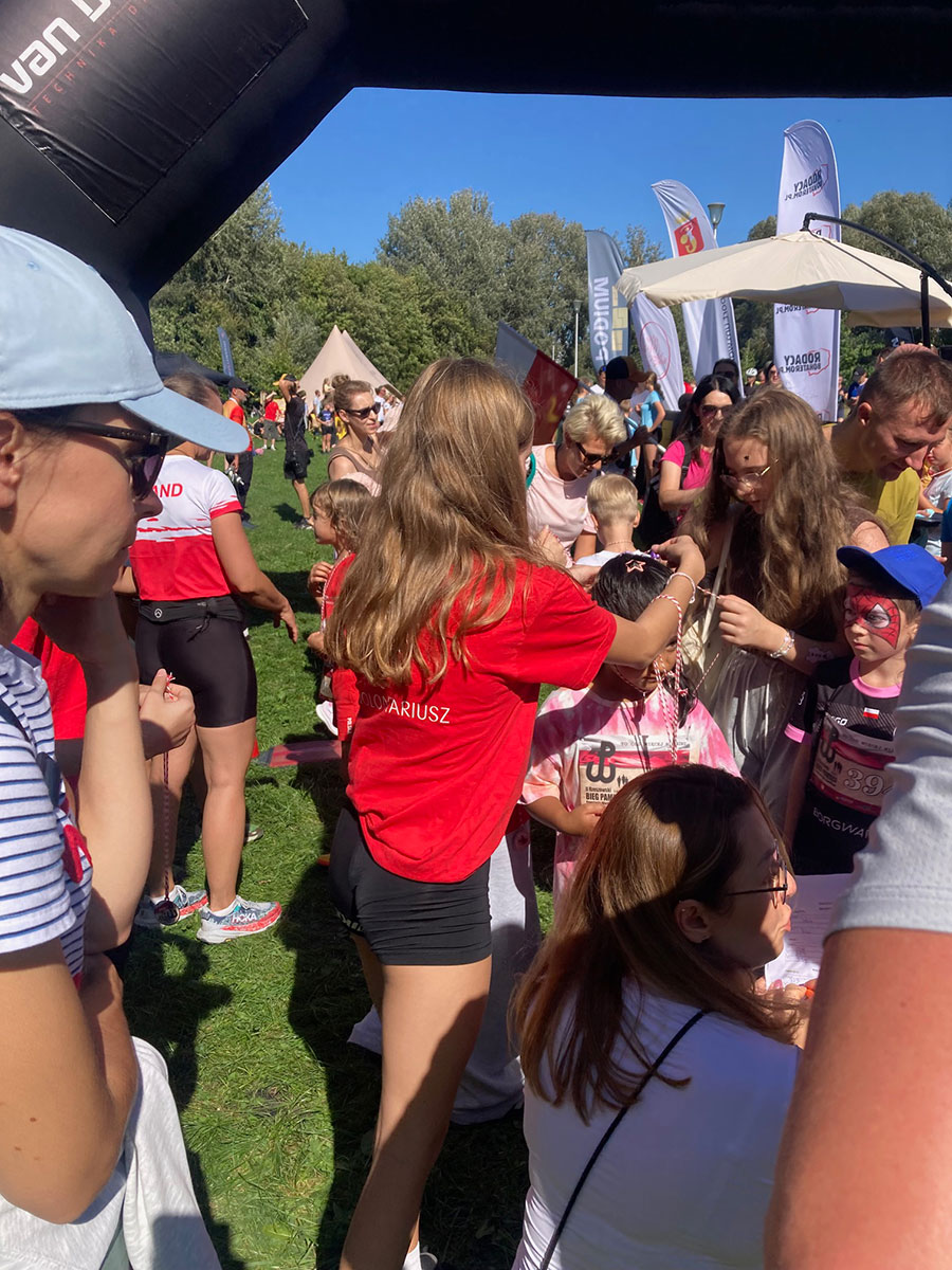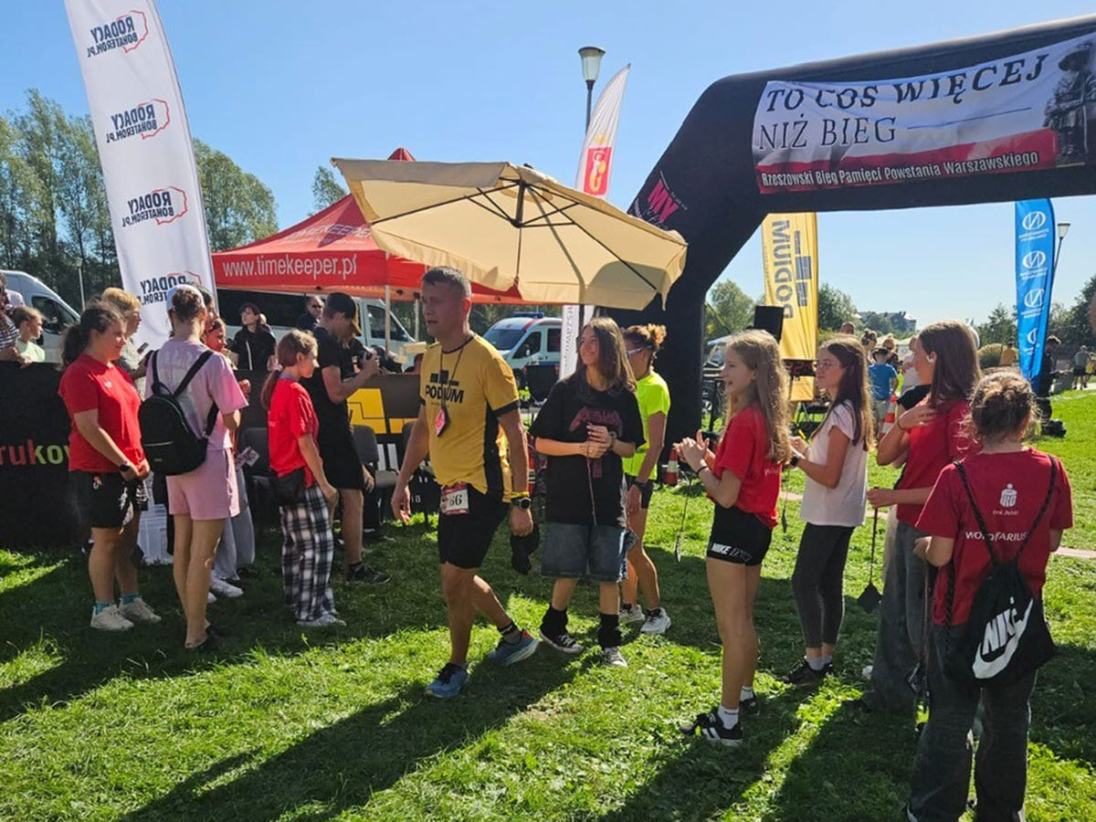 Impreza sportowa przebiegła przy pięknej pogodzie, podniosłej, patriotycznej atmosferze oraz w obecności wyjątkowych gości – weteranów Powstania Warszawskiego. Nasi wolontariusze okazali się niezwykle pomocni zarówno na trasie biegu, jak i na mecie, gdzie wręczali medale uczestnikom. Z ogromnym zaangażowaniem zagrzewali do walki zarówno dzieci, jak i dorosłych.