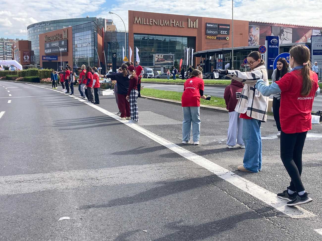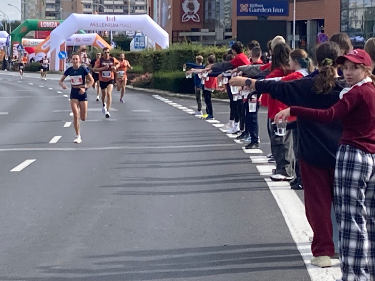 Na trasie głównego biegu 10 i 5 km, nasi uczniowie zagrzewali do sportowej walki, nawadniali biegaczy i sprzątali po dobrze wykonanej pracy. Niektórzy wolontariusze najpierw uczestniczyli we wcześniejszych biegach młodzieżowych, a później pomagali z uśmiechem mimo zmęczenia. Chętnych do pracy zebrała się cała gromada aż 36 wolontariuszy z klas siódmych i ósmych. Dziękujemy za poświęcony wolny czas. Dobrze, że możemy na Was liczyć! Uczniów zorganizowały opiekunki Szkolnego Koła Wolontariatu panie: Agata, Anna i Kasia.