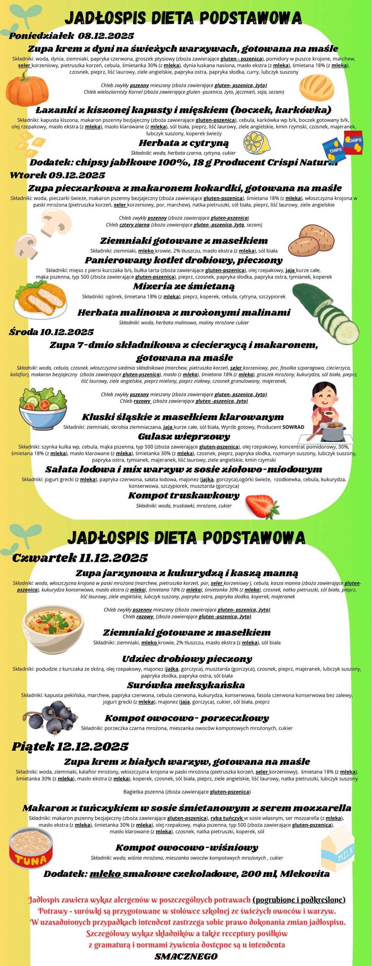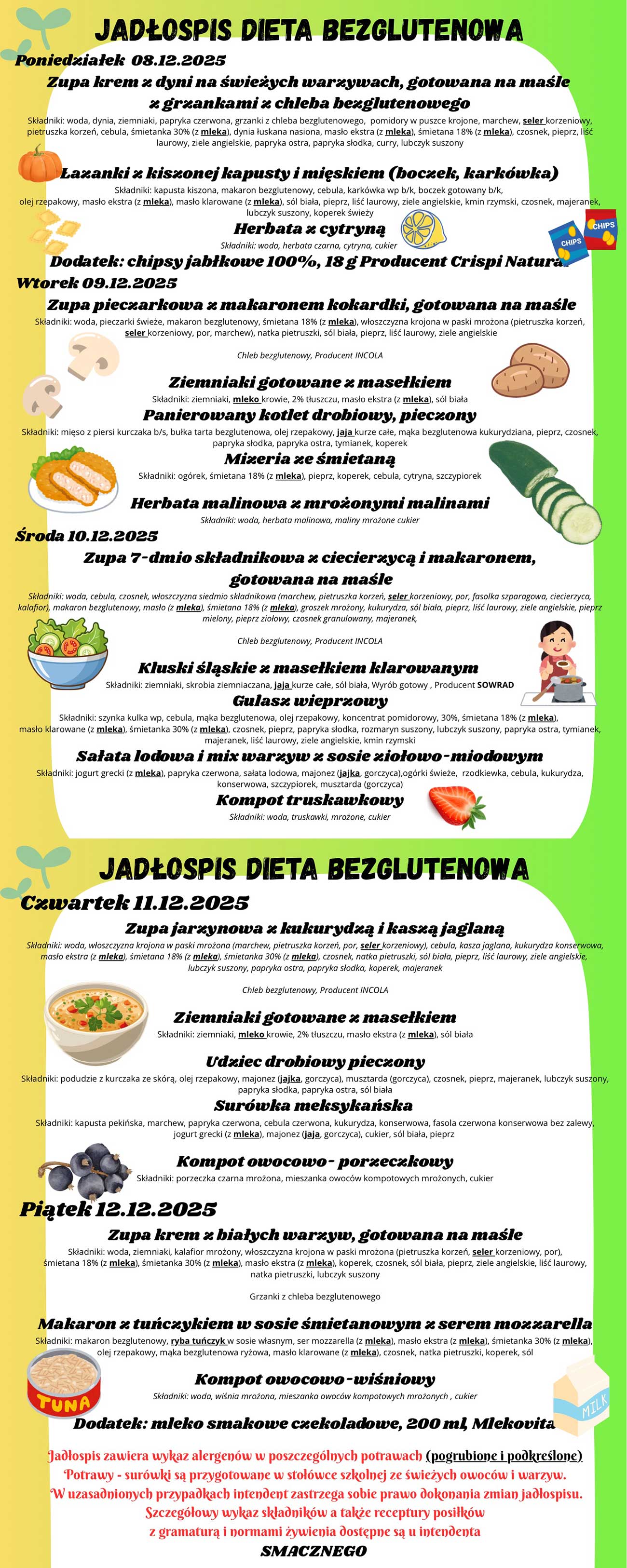 Jadłospis 08.12. - 12.12.2025 r. - dieta bezglutenowa >>>