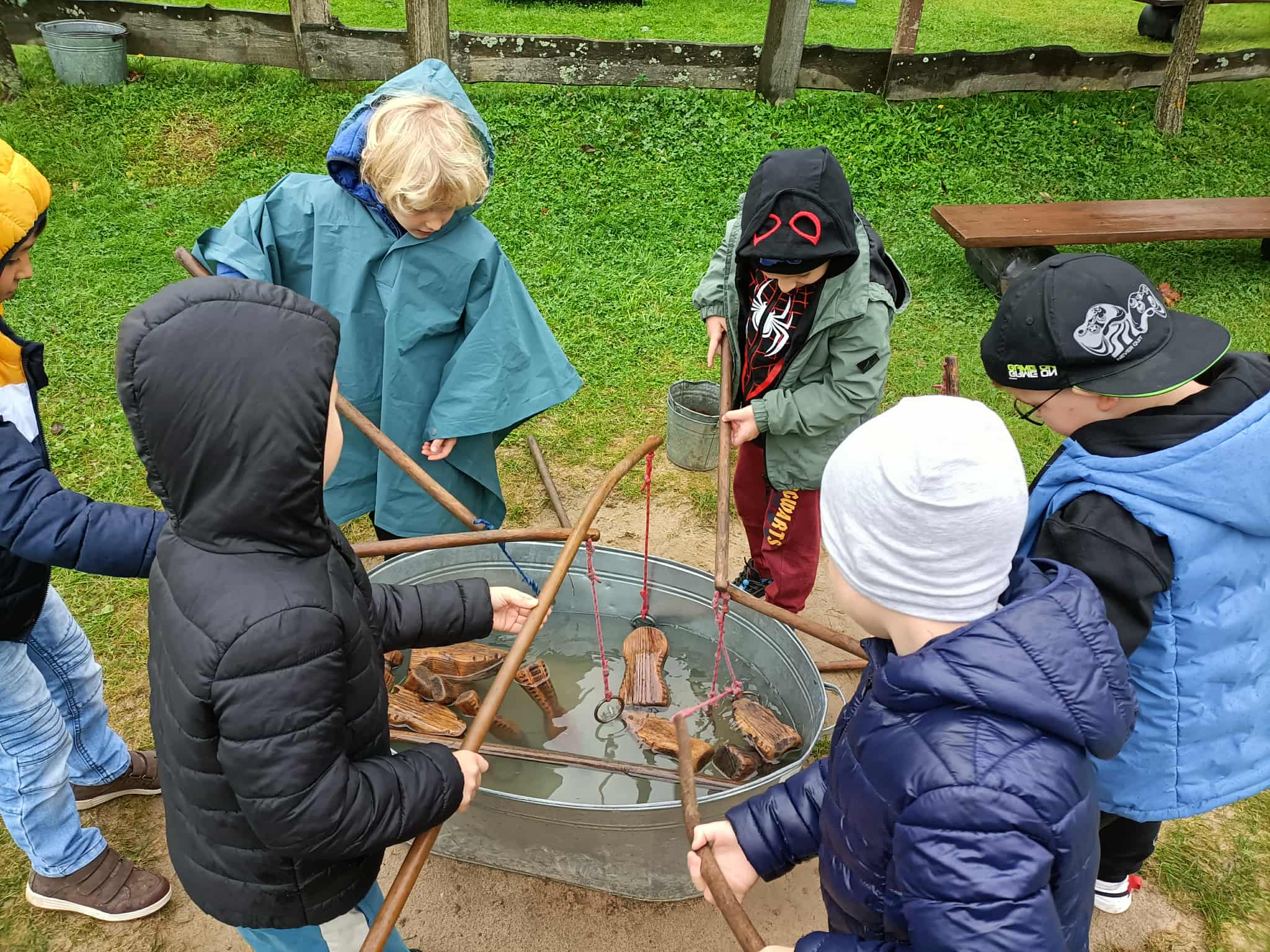 Największym hitem okazało się kiszenie kapusty. Każdy pierwszak wrócił do domu z własnym słoiczkiem – pamiątką i dowodem, że w życiu warto umieć coś więcej niż tylko włączyć komputer. Była też jazda taczkami i drewnianymi wózkami, łowienie rybek z bali i mnóstwo, ale to naprawdę mnóstwo śmiechu. Choć pogoda była kapryśna, dobry humor nie opuszczał nikogo. Dzieci wróciły brudne, ale szczęśliwe – czyli dokładnie takie, jakie powinny być po udanej wycieczce.